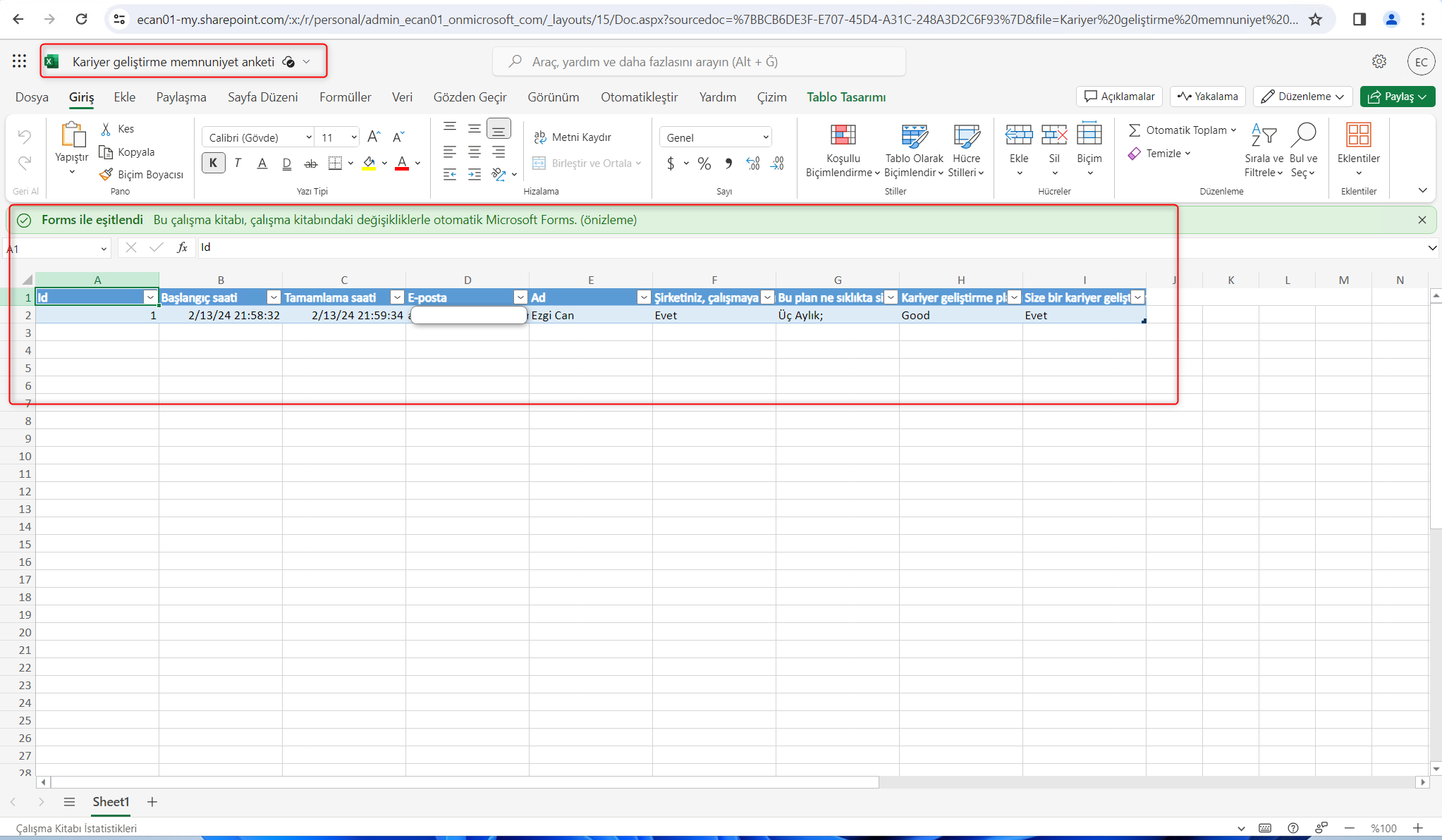 Microsoft Forms Verilerinin Excel ile Eşitlenmesi