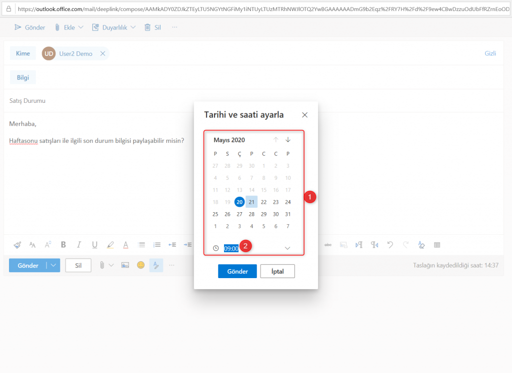 Outlook Web’te “Daha Sonra Gönder” Özelliği